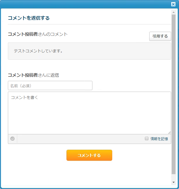 コメント返信用のウインドウが表示されるので、ブログでコメントするのと同様に、