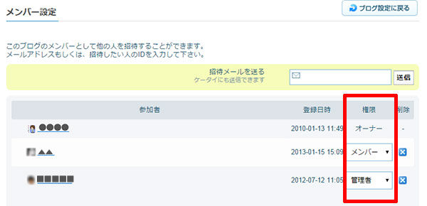 ブログ設定の変更と、他のメンバーが投稿した記事の編集はできません。参加した時の初期状態は「メンバー」になっています。