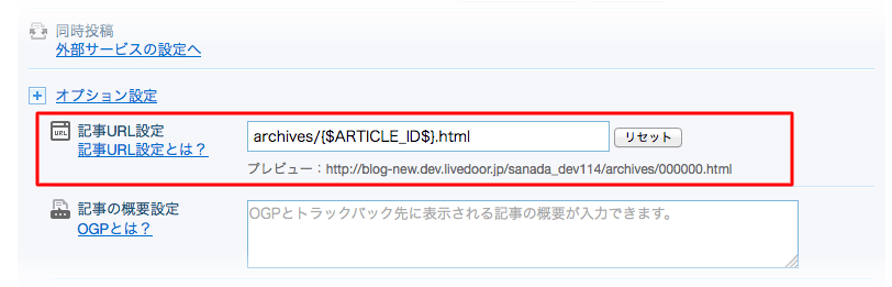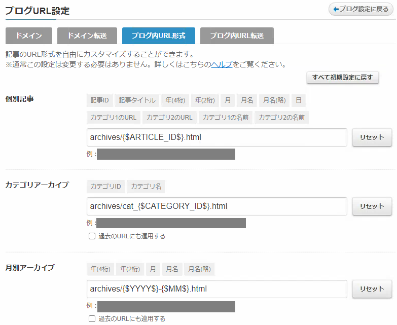 管理画面:ブログ設定>ブログURL>ブログ内URL形式