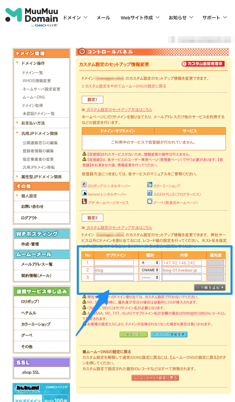 続いて、ライブドアブログの設定を実施してください。