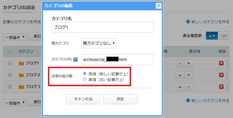 - 記事の並び順を「降順」、もしくは「昇順」にする