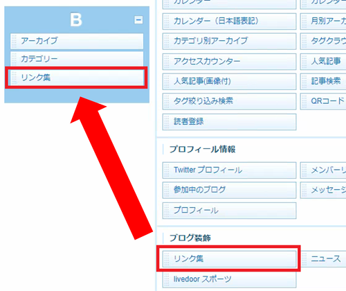 ブログパーツ「リンク集」をサードバーに追加する方法