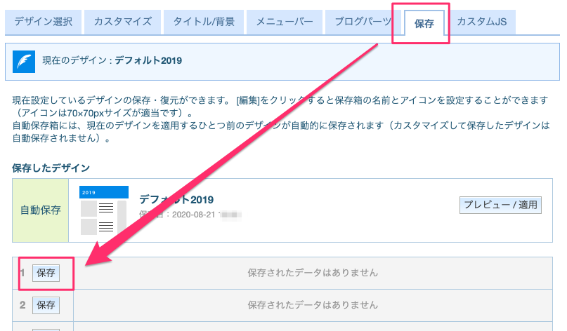 設定中のデザインを、今後利用しない場合はこの保存は不要です。
