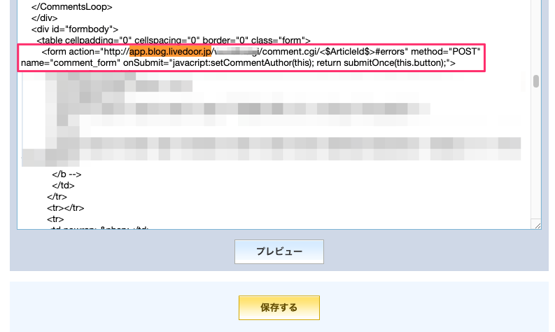 actionのURLに、古いapp.blog.livedoor.jpのドメインが利用されている場合は、変更が必要です。