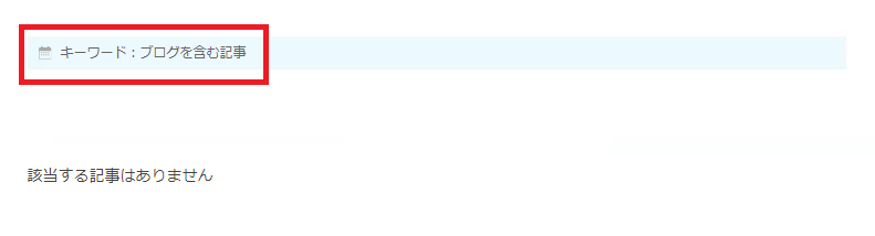以下画像では「ブログを含む記事」と表示されていますが、「該当する記事はありません」とも表示されておりますので、ブログ内の記事に「ブログ」というキーワードが記載がされているわけではございません。