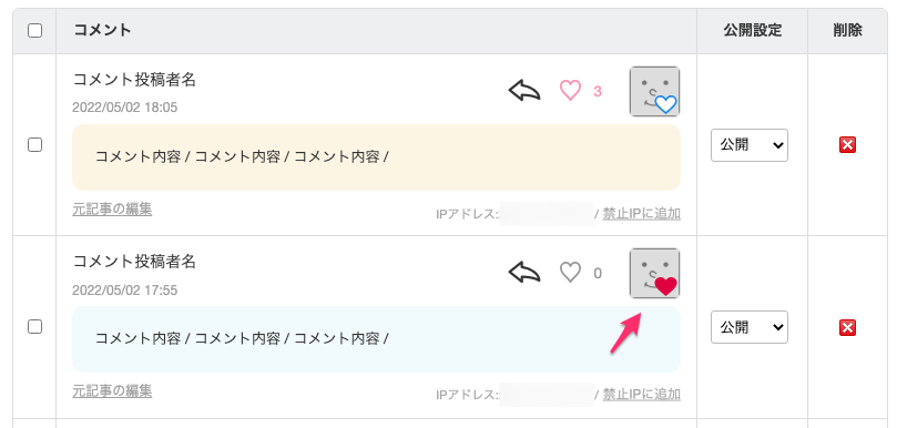 ※ PC版ブログページにブログ運営者からの「コメントへのいいね」を表示するためには、以下の設定を行う必要があります。