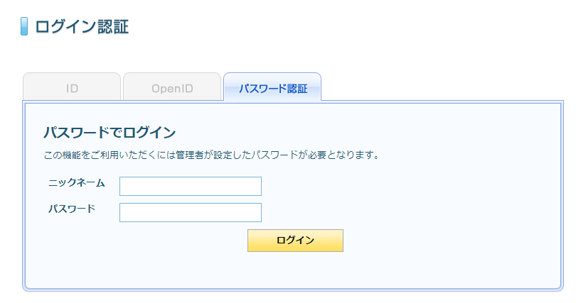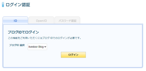 入力する情報「ID」「Open ID」「パスワード認証」は、ブログ管理者によって指定されている場合があります。