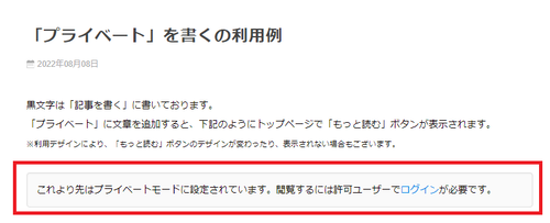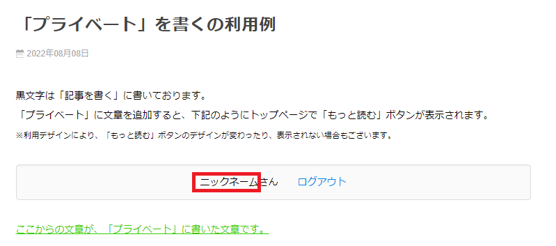設定されたニックネームはパスワードを入力してログインした限定公開ページ内で表示されます。