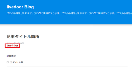 設定すると、記事タイトル下周辺に星、もしくは顔が表示されます。